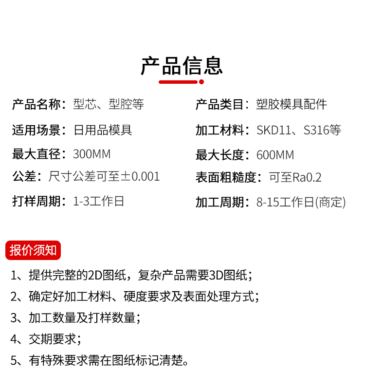 机加工类型: CNC、数控车、抛光 加工精度: 精整加工 加工材料: SKH51、S316等 最大直径: 300 最大长度: 600(依产品复杂程度而定) 公差: ±0. 001 表面粗糙度: Ra0 樱花视频. 05 打样周期:1-3天 加工周期:7-15天(复杂产品周期商定) 年最大加工能力:7000000套.